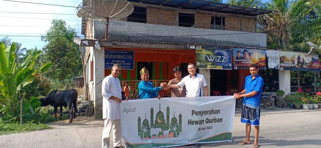PANTAU Dumai, 29 Juni 2023 — Dalam rangka memperingati Hari Raya Idul Adha 1444 H, Apical, salah satu pengolah minyak nabati terkemuka, melalui PT Sari Dumai Sejati (SDS) dan PT Sari Dumai Oleo (SDO) Dumai, menyerahkan 4 (empat) ekor sapi kurban kepada masyarakat sekitar perusahaan melalui masjid dan musholla, yang berada di sekitar wilayah operasional perusahaan, yakni Masjid Al-Huda, Musholla Al-Furqon, Musholla Miftahul Jannah dan masyarakat di lingkungan RT 015, RT 016 dan RT 017, Kelurahan Lubuk Gaung, Kecamatan Sungai Sembilan, Kota Dumai, hari ini.