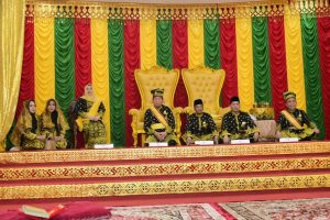 Kemudian penyematan tanjak, keris, dan selempang. Lalu dilanjutkan dengan tepuk tepung tawar.