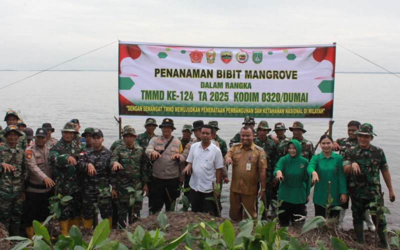 Ratusan bibit pohon mangrove ditanam secara serentak dalam sebuah kegiatan yang merupakan bagian dari rangkaian TNI Manunggal Membangun Desa (TMMD) ke-124 yang diselenggarakan oleh Kodim 0320/Dumai.