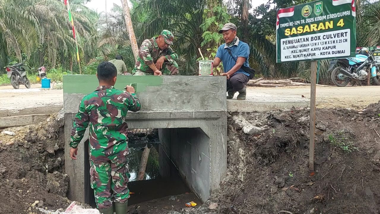 AMANATRIAU.COM DUMAI – Warga Kelurahan Bukit Kayu Kapur akhirnya dapat bernapas lega. Pembangunan box culvert yang menjadi bagian dari program TNI Manunggal Membangun Desa (TMMD) ke-124 oleh Kodim 0320/Dumai telah rampung dan kini telah dapat digunakan kembali sebagai jalur utama aktivitas masyarakat.