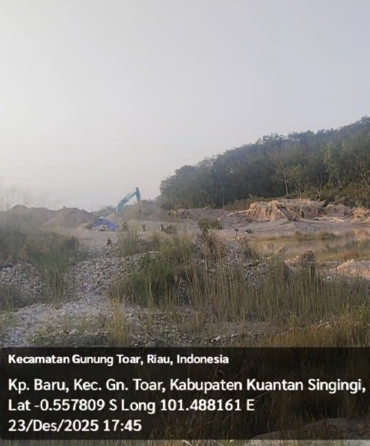 Aktivitas PETI gunakan alat berat jenis Ekskavator tersebut tepatnya beroperasi disekitar wilayah batas kebun masyarakat Desa Kampung Baru – Desa Petapahan Kecamatan Gunung Toar yang merupakan bagian dari Wilayah Hukum Polsek Kuantan Mudik.