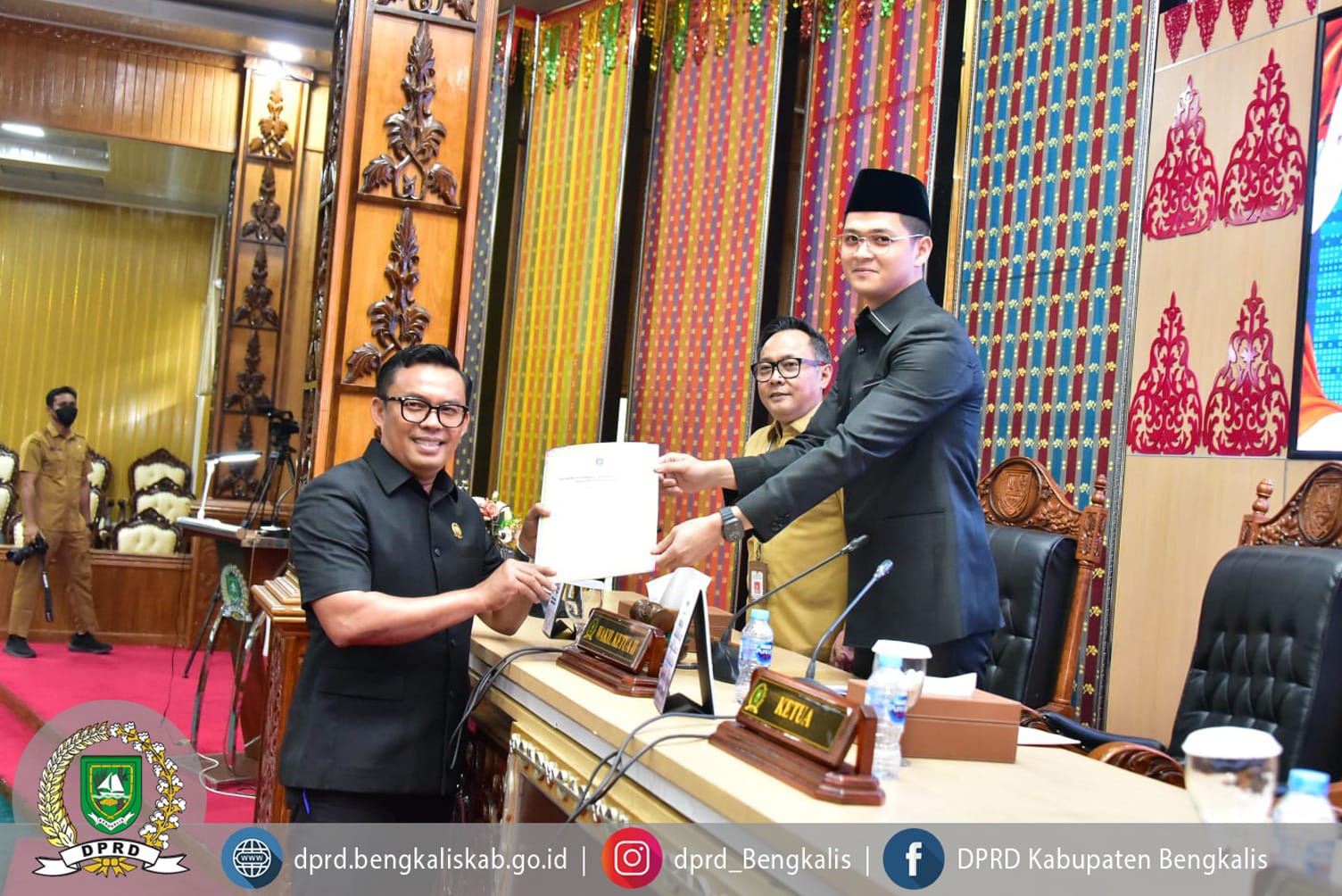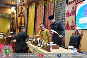 Rapat paripurna tersebut dipimpin oleh Wakil Ketua II DPRD Kabupaten Bengkalis Hendrik Firnanda Pangaribuan, bersama Ketua DPRD Kabupaten Bengkalis Septian Nugraha, serta dihadiri Bupati Bengkalis yang diwakili oleh Sekretaris Daerah Kabupaten Bengkalis Ersan Saputra, TH.
