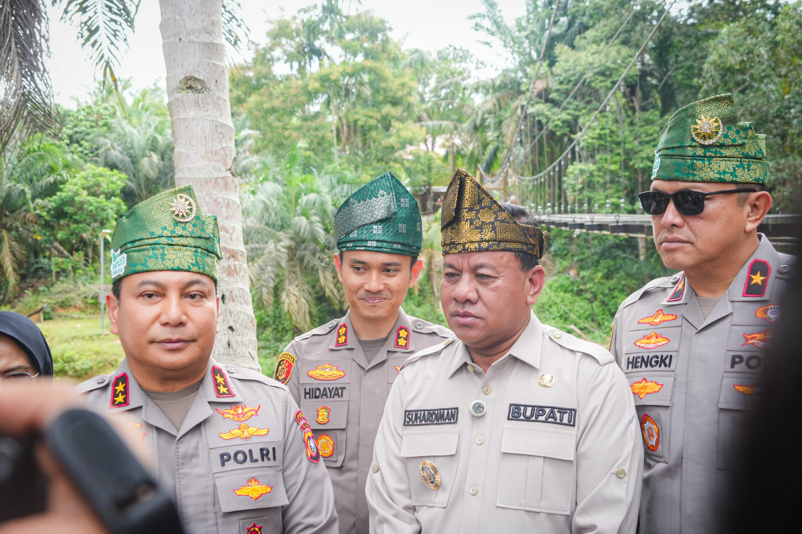 Kapolda Riau beserta rombongan melaksanakan peninjauan lokasi pembangunan jembatan gantung yang menghubungkan Desa Muara Petai dengan Desa Muara Tiu Makmur.