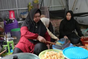 Suasana kebersamaan anggota UMKM Jacoline Berseri saat melakukan proses produksi keripik cabai khas Dumai. Usaha ini menjadi salah satu contoh penguatan ekonomi masyarakat berbasis rumah tangga melalui pengolahan produk lokal.