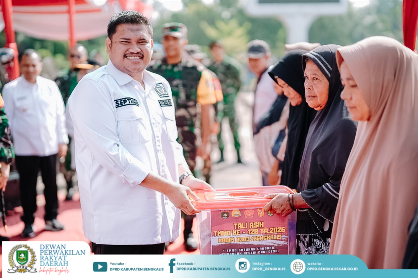 AMANATRIAU.COM Pinggir, — Ketua DPRD Kabupaten Bengkalis, Septian Nugraha, menghadiri pembukaan TNI Manunggal Membangun Desa (TMMD) ke-128 Tahun 2026 yang diselenggarakan oleh Kodim 0303/Bengkalis. Kegiatan ini mengusung tema “TMMD Satukan Langkah, Membangun Negeri dan Desa” dan dilaksanakan di Lapangan Kantor Camat Pinggir, Rabu (22/04/2026).