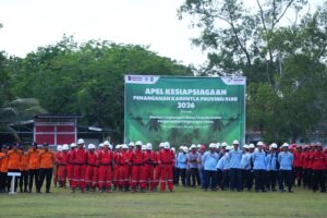 AMANATRIAU.COM Dumai, 26 Apri 2026 — PT Pertamina Patra Niaga Refinery Unit Dumai (Kilang Pertamina Dumai) menegaskan komitmennya dalam kesiapsiagaan mendukung pemerintah dalam upaya mitigasi pengendalian Kebakaran Hutan dan Lahan (Karhutla) di Kota Dumai. Komitmen ini dibuktikan lewat dukungan penuh Kilang Dumai sebagai tuan rumah pelaksanaan Apel Siaga Pengendalian Karhutla Tahun 2026 di Dumai yang dilaksanakan di Lapangan Bapor Komplek Perumahan Pertamina (Komperta) Bukit Datuk, Minggu (26/4).